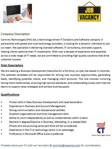 JOB VACANCY-Business development Executive